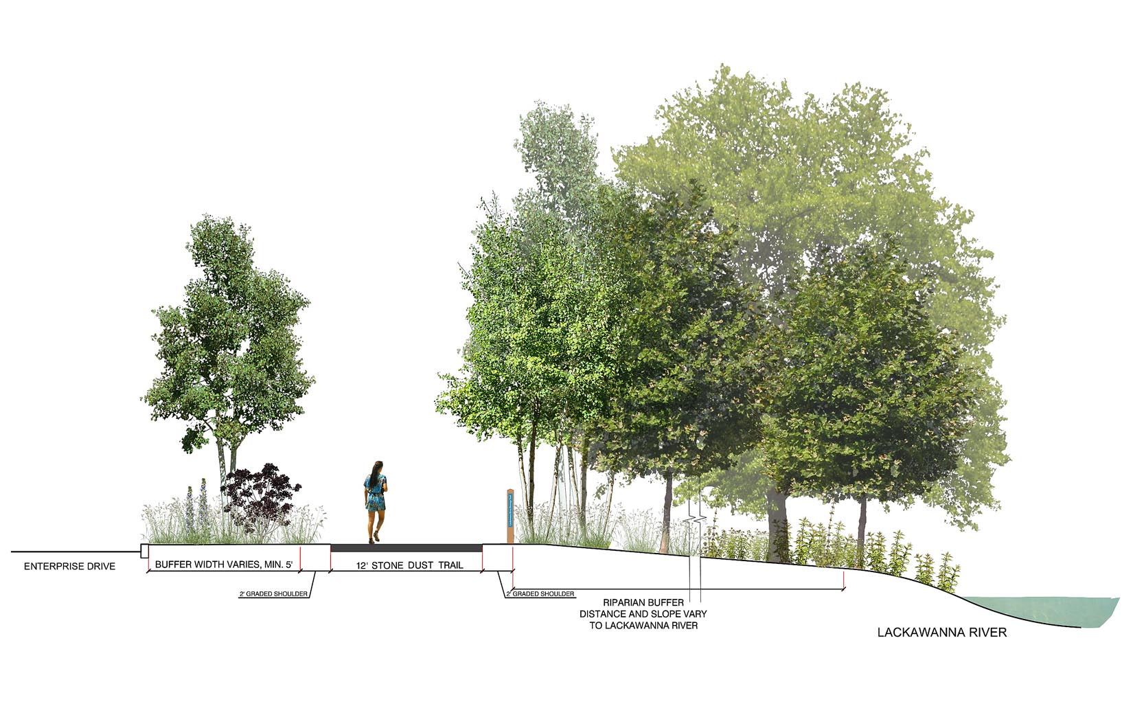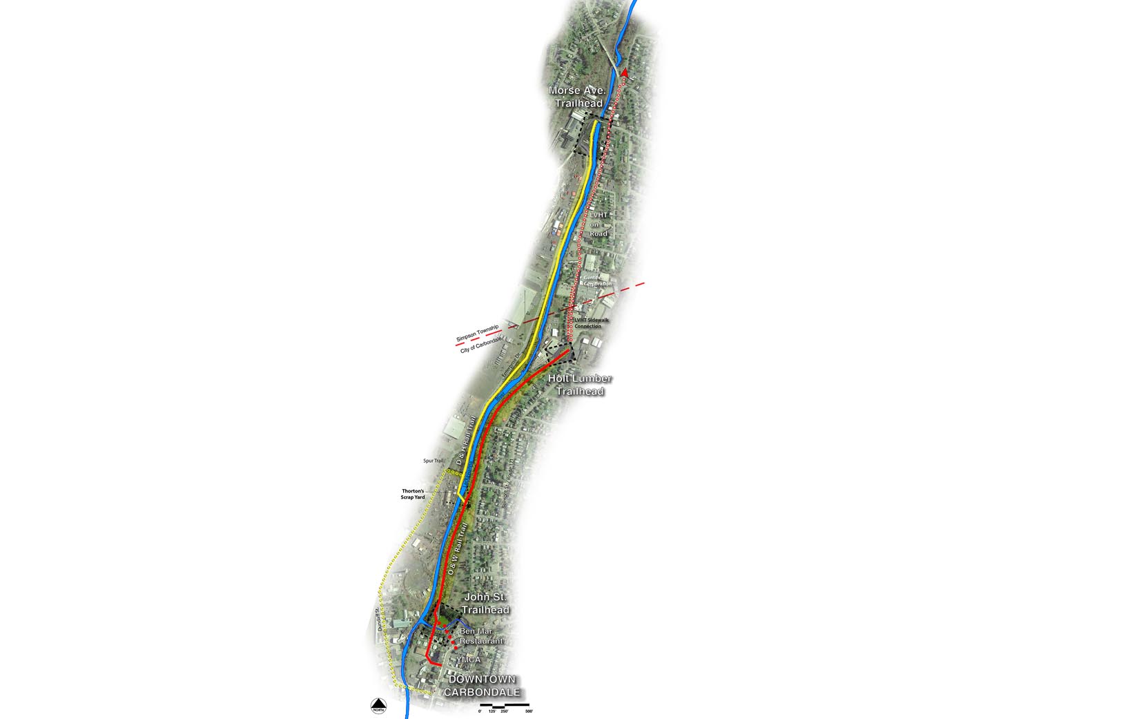 This waterfront trail project provided planning and design for the Carbondale-Simpson Riverwalk section of the Lackawanna River Heritage Trail in the City of Carbondale, PA.