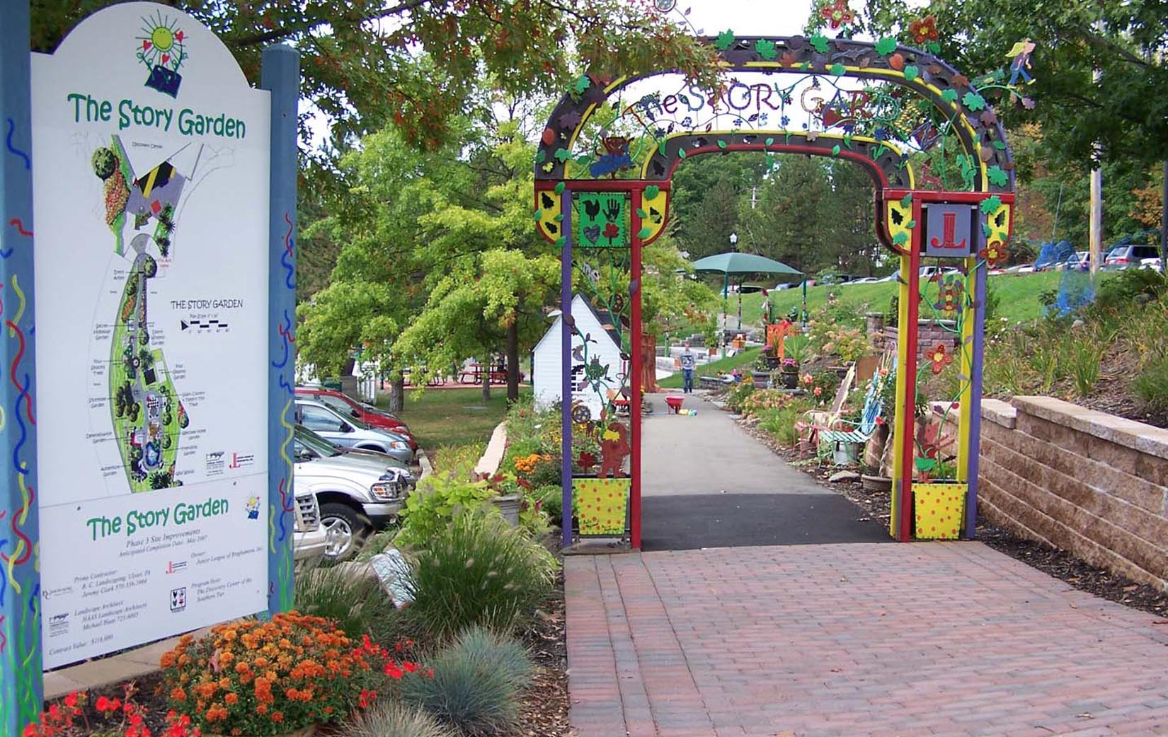 The Story Garden at the Discovery Center of the Southern Tier in Binghamton, NY offers 13 vignettes focused on literary themes and provides opportunities for educational programming for children.