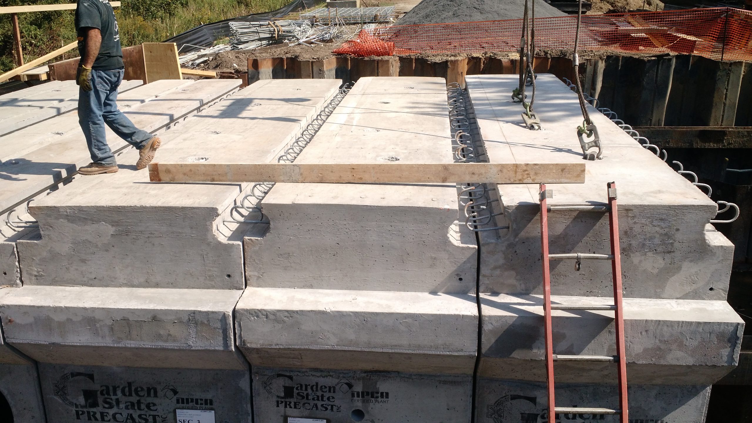 Garden State Precast contracted with Delta to design and provide stamped engineering drawings for construction purposes. Approach slabs and 3-sided precast concrete sections were formed to create an overall bridge dimension of 19’-6” clear span by 51’-6” wide single span culvert structure, supported by two spread footings.