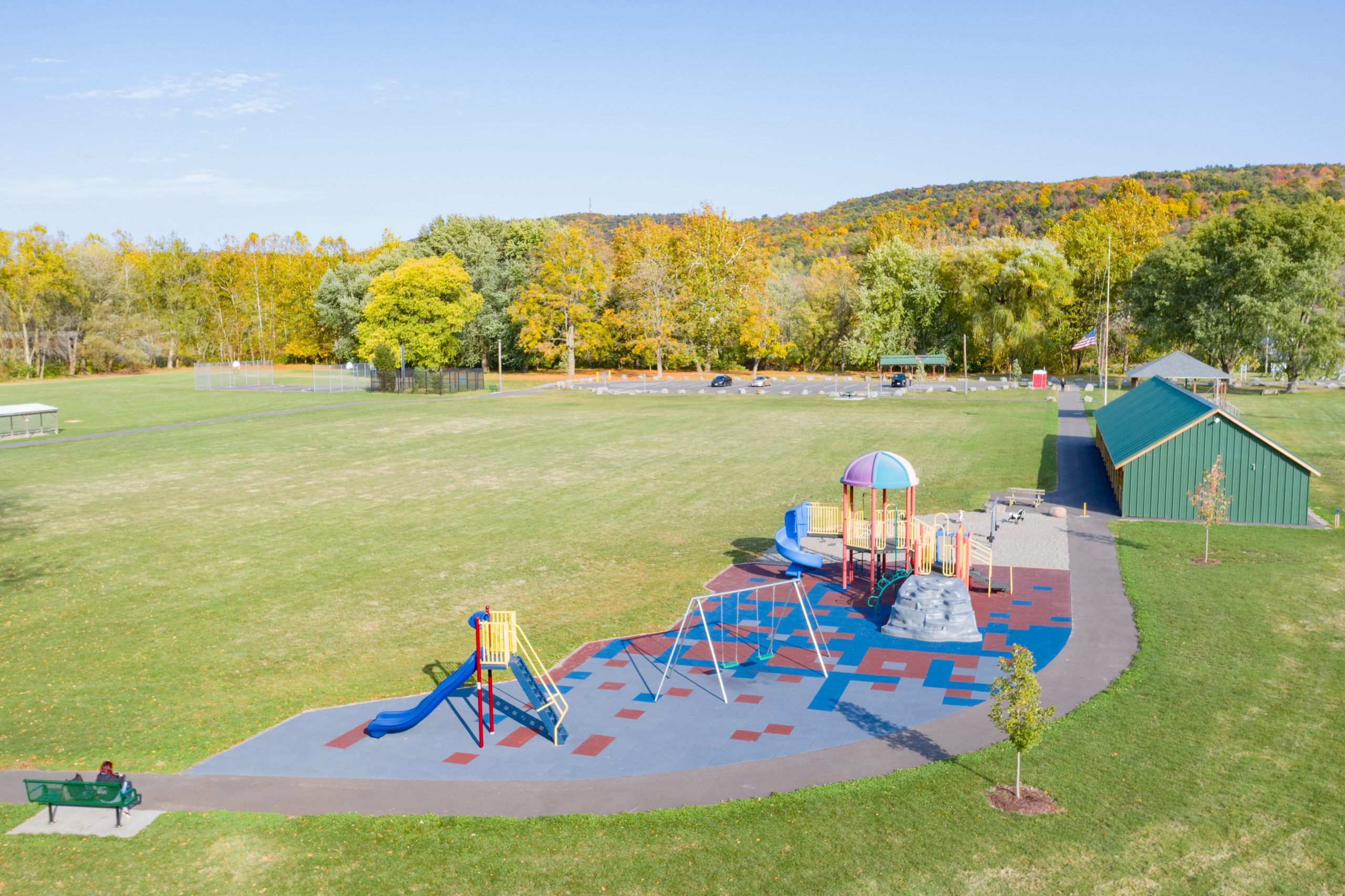Delta provided design services for improvements to Kirby Park in Nichols, NY including a new picnic pavilion with electrical service, a paved walking trail loop, a new accessible playground, parking expansion, a new ballfield, lighting enhancements, landscaping amenities, ADA-compliant trails, and signage and wayfinding elements.